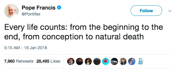 So it carried extra meaning when Pope Francis decided to tweet a pro-life message on that day!
