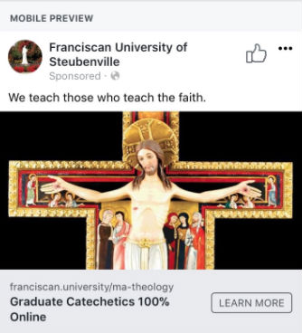 The twitter account for Franciscan University of Steubenville wrote, “An ad we placed was rejected by Facebook today for content that is ‘shocking, sensational, and excessively violent.’ We must agree with them.”