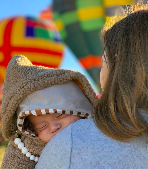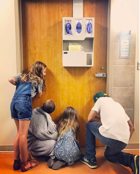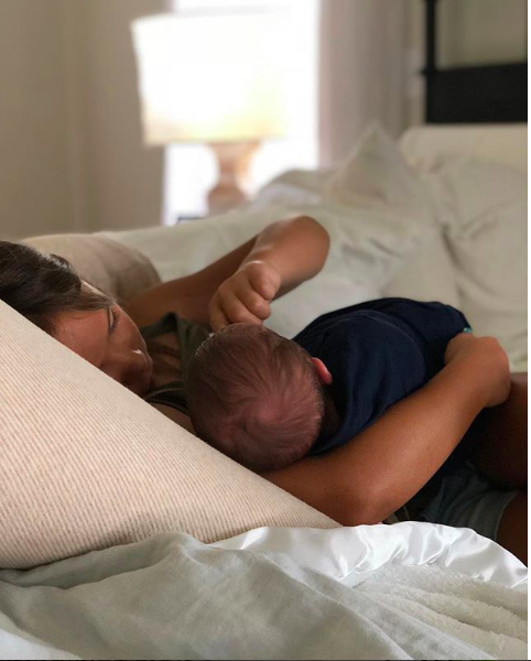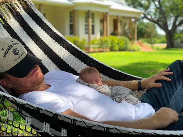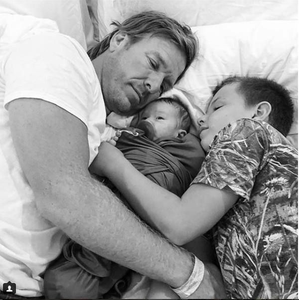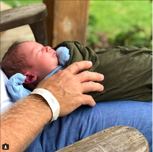 The caption for the two photos above read, “Our baby boy, Crew Gaines, is here and we couldn’t be more in love. He made an unexpected (and speedy) entrance into the world two and a half weeks early – which is fitting given he was a sweet surprise from day one. Thank you for all your thoughts and prayers. We are so grateful.”