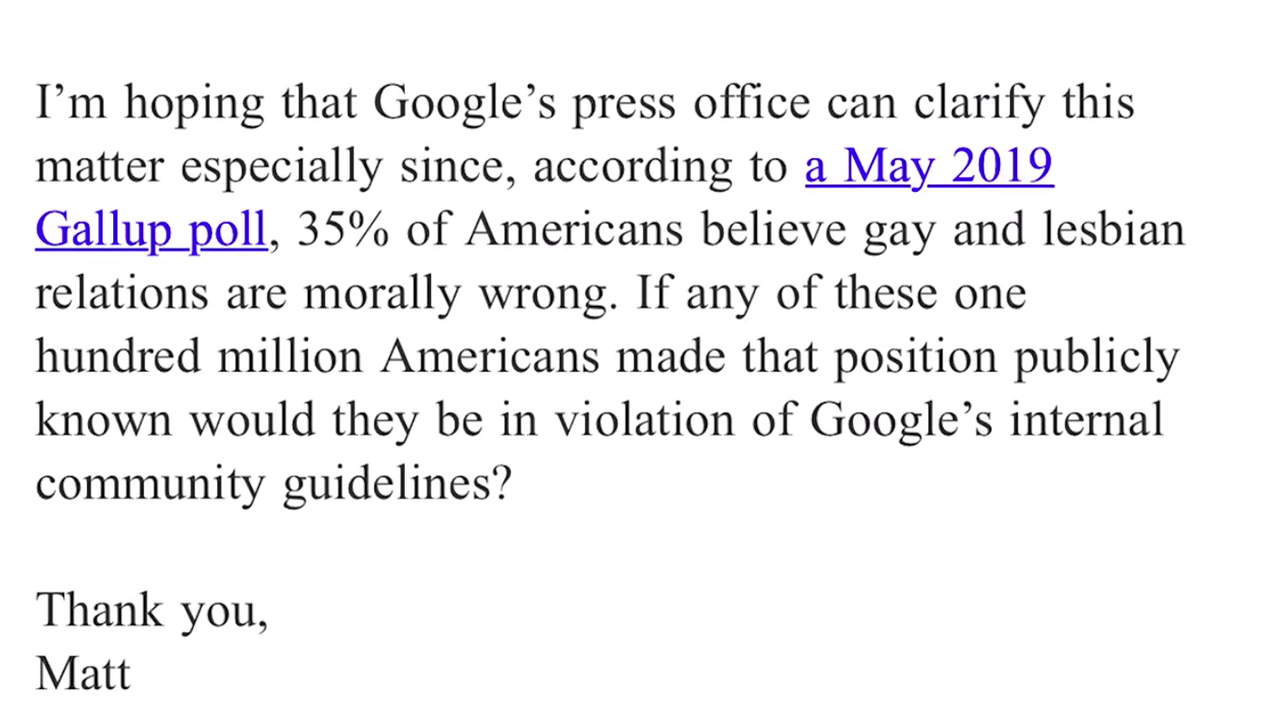 “I would have thought that a company as big, awesome and cool as Google wouldn’t be concerned with criticism or backlash they might get from people who follow little ole Matt Fradd,” he said. ” But I think they are. I think there is a lot of pressure on Google right now.”