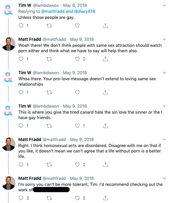 The Twitter thread merely defended his and the Catholic Church’s position that homosexual acts are disordered, and and a life without pornography is better.