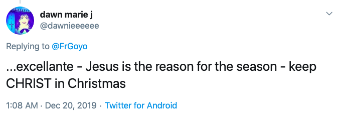 This user added, “Excellante – Jesus is the reason for the season – keep CHRIST in Christmas.”