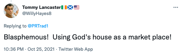 This Twitter user said, “Blasphemous! Using God’s house as a marketplace!”