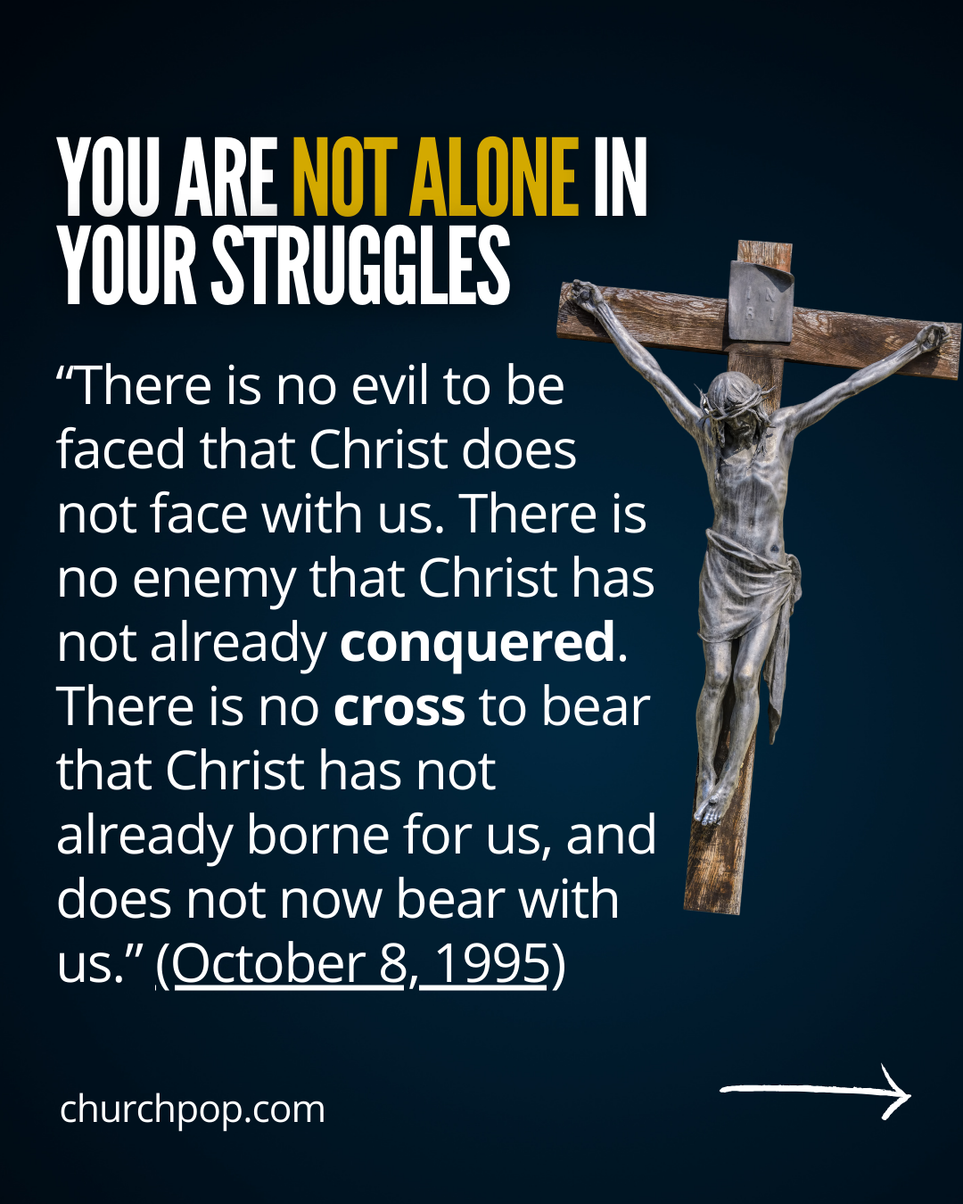 “There is no evil to be faced that Christ does not face with us. There is no enemy that Christ has not already conquered. There is no cross to bear that Christ has not already borne for us, and does not now bear with us.” (Oct. 8, 1995)
