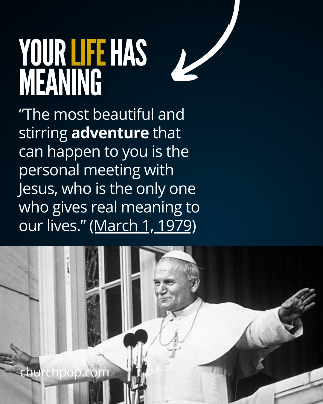 “The most beautiful and stirring adventure that can happen to you is the personal meeting with Jesus, who is the only one who gives real meaning to our lives.” (March 1, 1979)