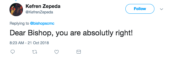 Another user said, “Dear Bishop, you are absolutely right!”