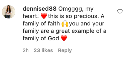 This user said, “…my heart!…This is so precious. A family of faith…you and your family are a great example of a family of God.”
