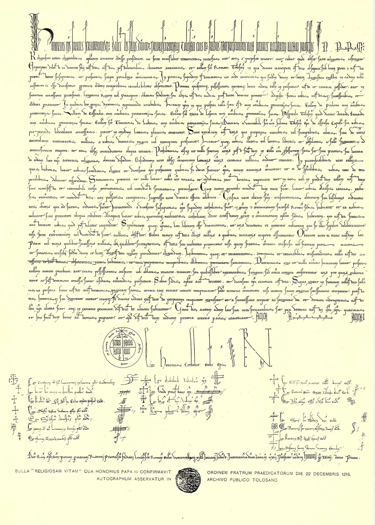 On December 22nd, 1216 – 800 years ago today – Pope Honorius III promulgated Religiosam vitam, a papal bull officially recognizing the Order of Preachers (also known as the Dominicans, named for their founder St. Dominic). The Dominicans had been around for a few years and had local episcopal approval, but this papal bull extended that recognition to the whole Church.