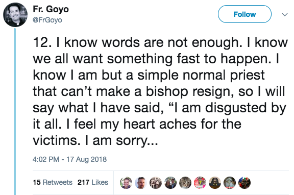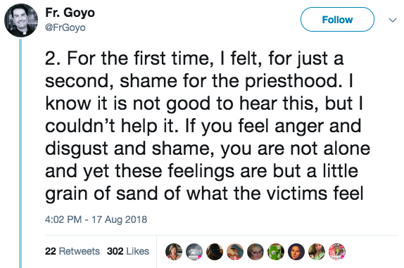 Eastern orthodox commentator and journalist Rod Dreher said of this story: “An important thread. I’ve long said that aside from actual victims and their families, the ones who suffer the most from this scandal are the innocent priests, who have to bear the shame of their corrupt brothers, and the bishops who protected them.”