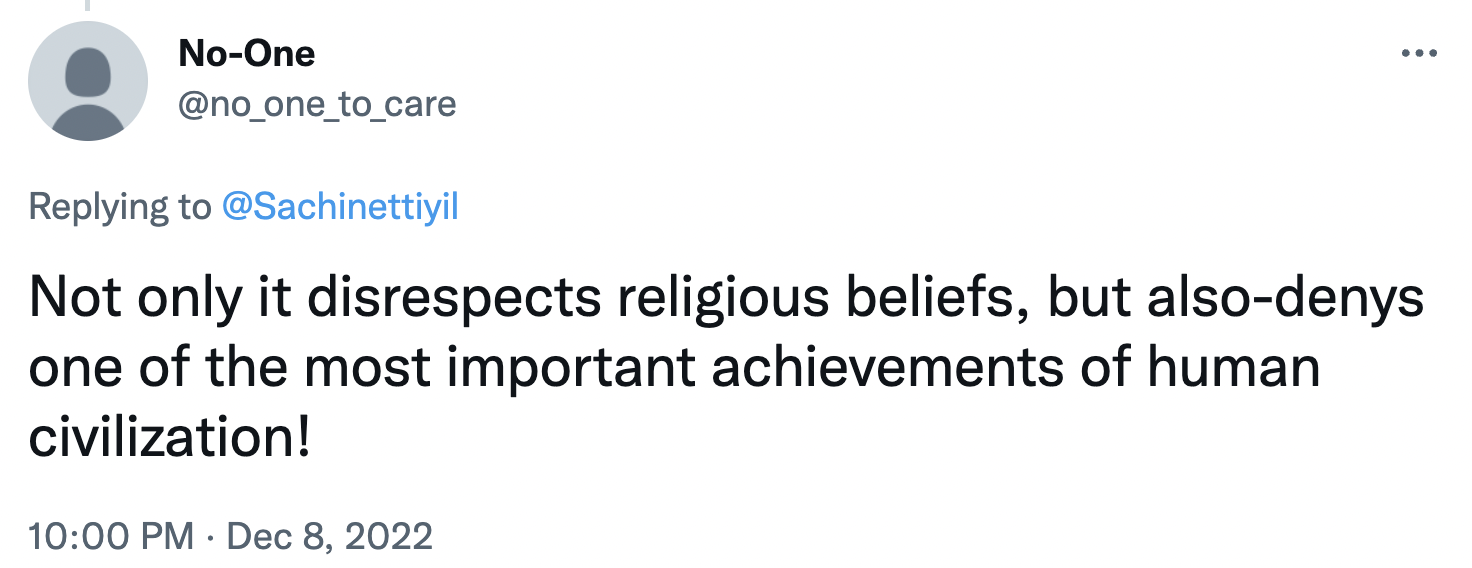 Another user commented, “Not only [does] it [disrespect] religious beliefs, but [also denies] one of the most important achievements of human civilization!”