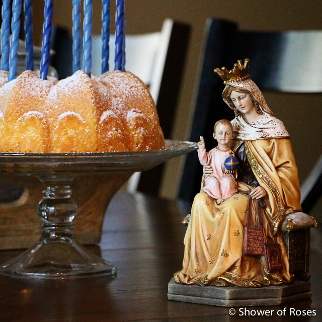 Jessica Gordon, a homeschooling mom of eight kids, celebrates Mary’s birthday every year with her family. The family normally bakes a bundt cake decorated with the Fleur-de-lis, which represents the Blessed Mother.
