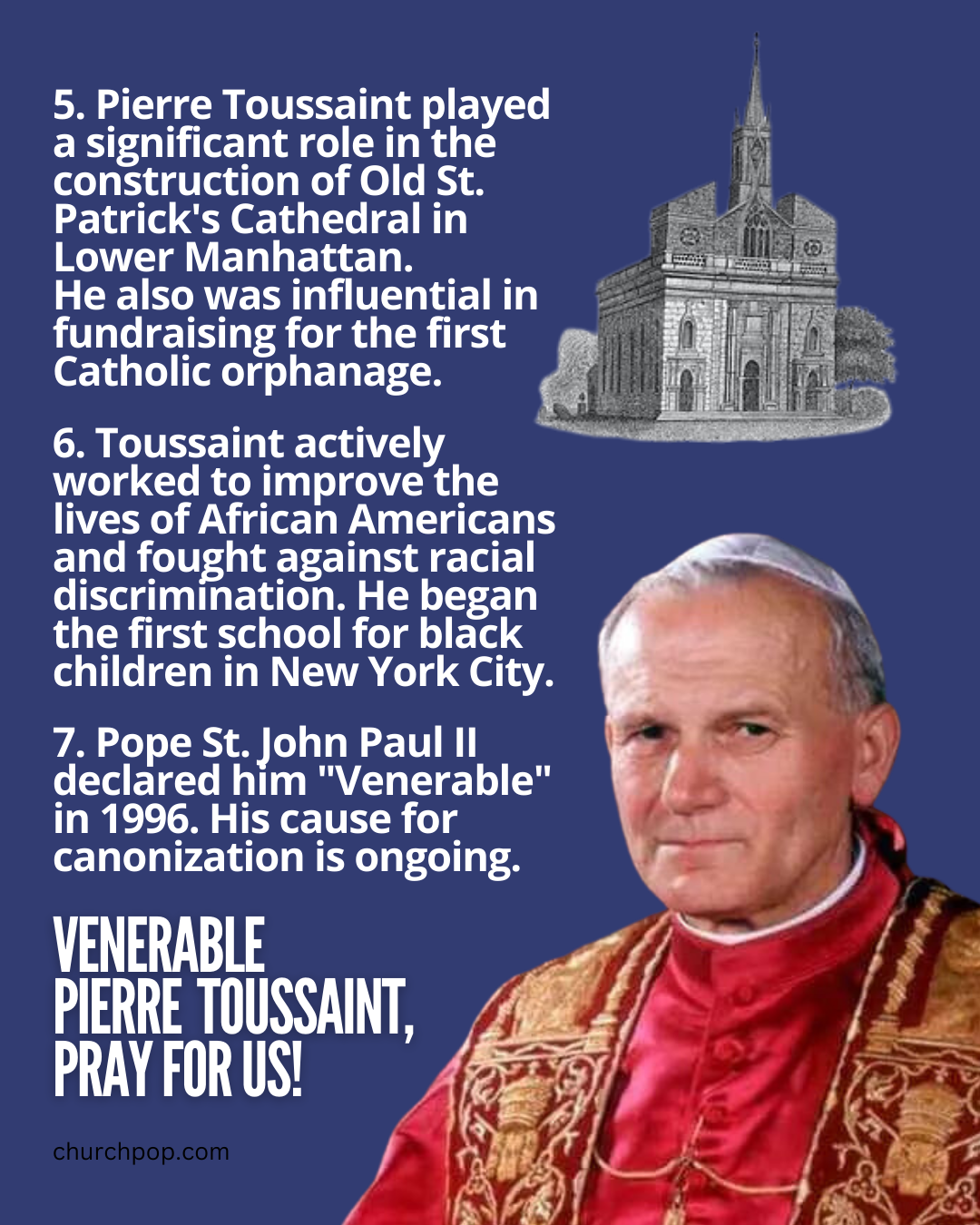 5. Pierre Toussaint played a significant role in the construction of Old St. Patrick's Cathedral in Lower Manhattan. He also was influential in fundraising for the first Catholic orphanage.