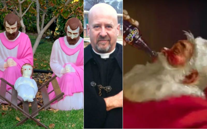 This is rich. We can’t say “Merry Christmas” because someone might be offended, but Christians are not supposed to be offended by a Nativity scene with two Josephs dressed in pink?