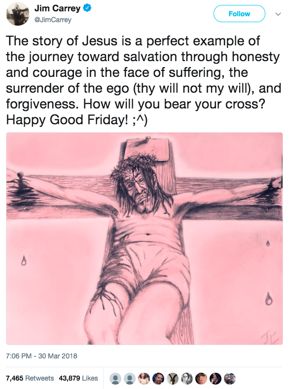 This most recent Good Friday, Carrey took up the greatest subject of them all: Jesus Christ, and his sacrifice for our sins on the cross.