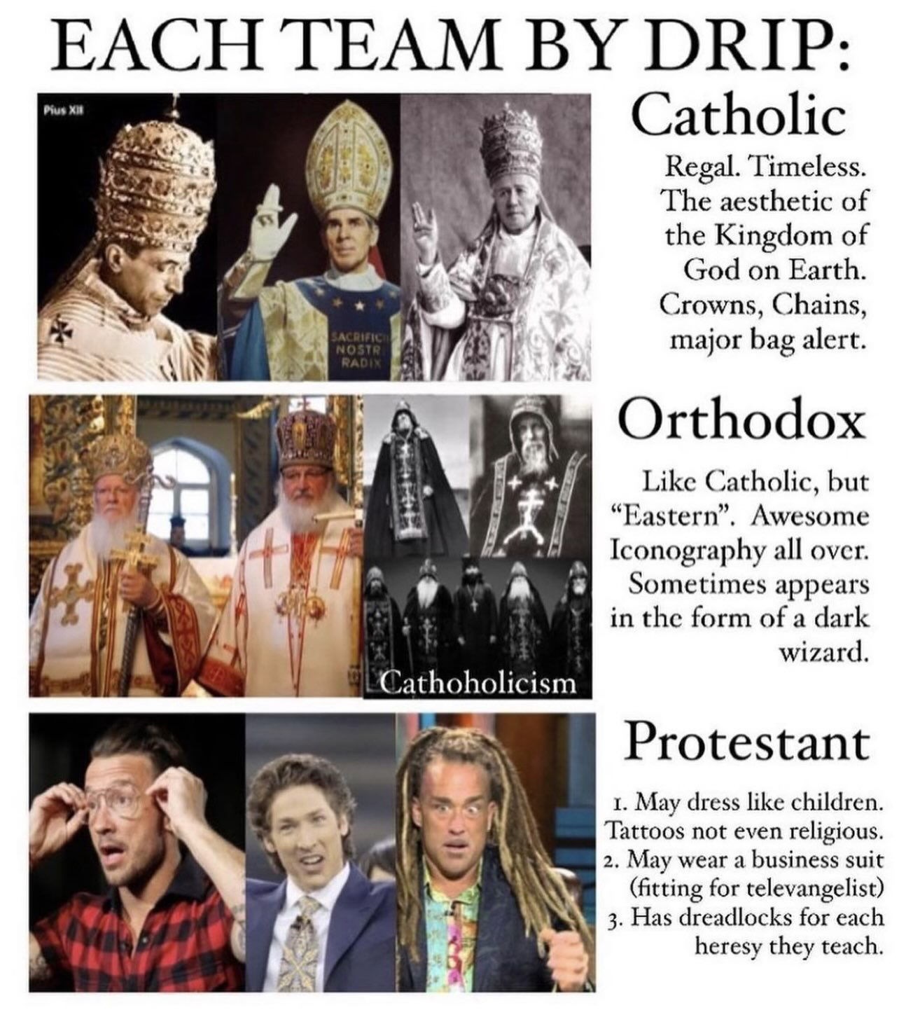 The Instagram account Cathoholicism published another set of amazing memes illustrating differences between Catholics, Orthodox Christians, and Protestants.