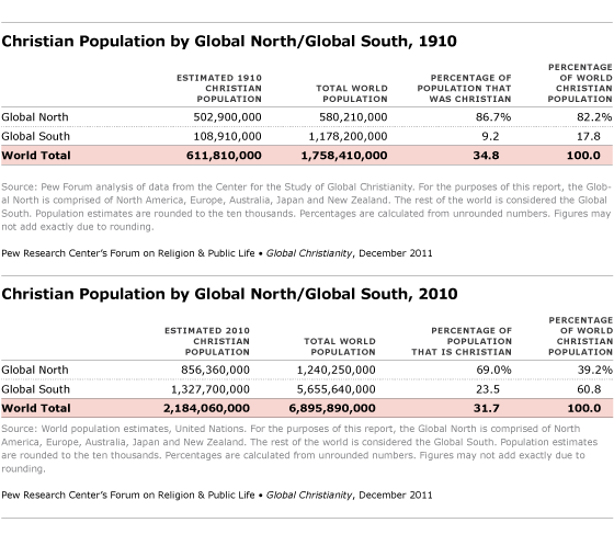 2) In 1910, 66.3% of all Christians lived in Europe. In 2010, only 25.9% lived in Europe.