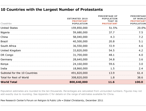 19) 1/5th of all Protestants in the world live in the United States.