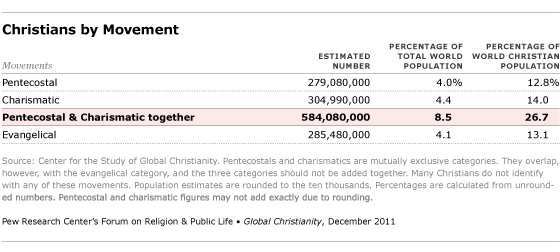 11) There are nearly 600 million Pentecostal and Charismatic Protestants in the world combined today.