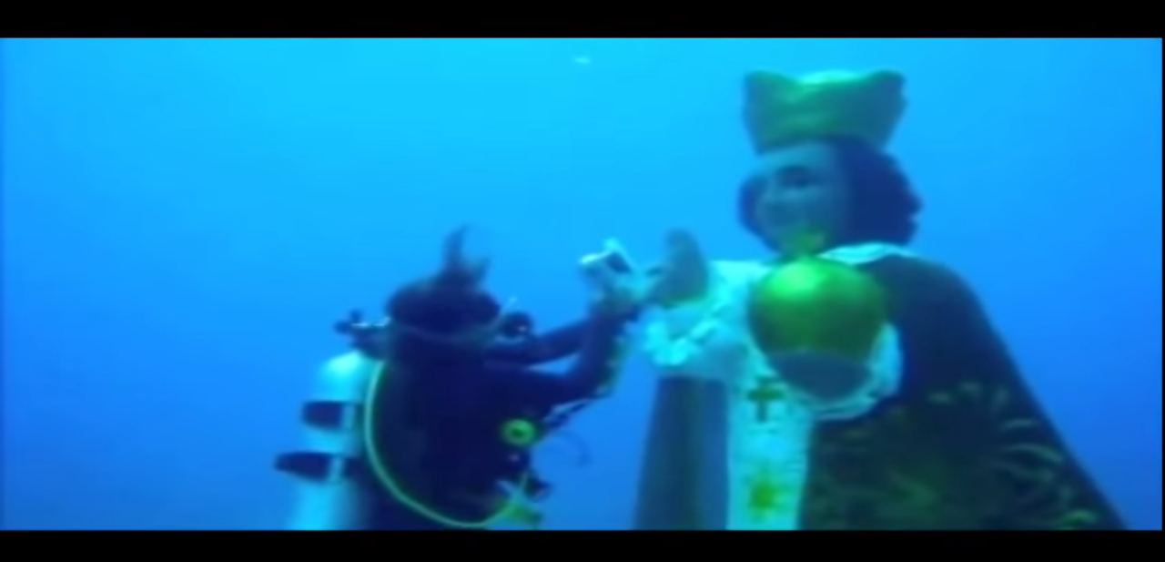 Like the Virgin Mary statue near Bohol, Philippines, this statue was also placed underwater to discourage illegal fishing practices that use dynamite.