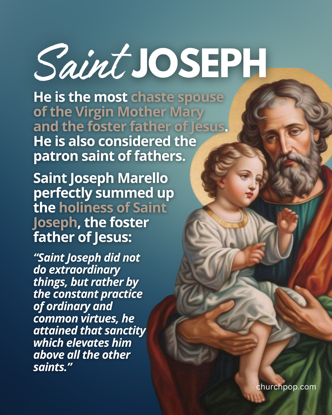 He is the most chaste spouse of the Virgin Mother Mary and the foster father of Jesus. He is also considered the patron saint of fathers.