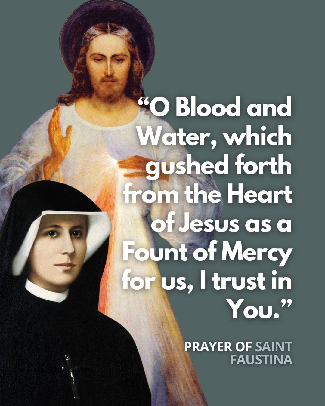 “O Blood and Water, which gushed forth from the Heart of Jesus as a Fount of Mercy for us, I trust in You.”