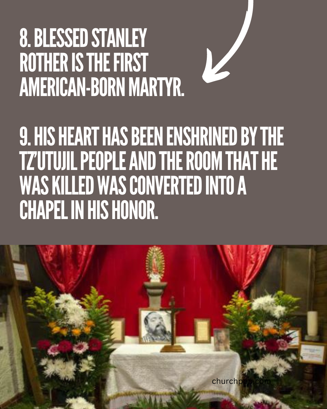 9. His heart has been enshrined by the Tz’utujil people and the room where he was killed was converted into a chapel in his honor.