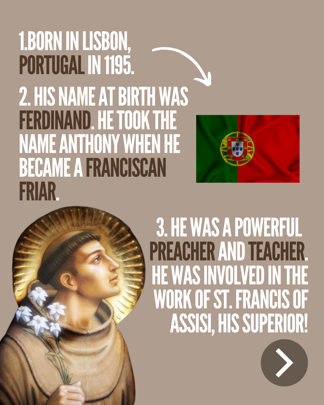 2. His name at birth was Ferdinand. He took the name Anthony when he became a Franciscan friar.