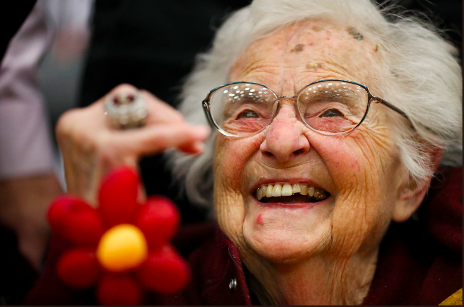 99-year-old Sister Jean Dolores Schmidt received a Final Four ring on Tuesday, Nov. 27 from the Loyola Ramblers men’s basketball team, which represents Loyola University Chicago.