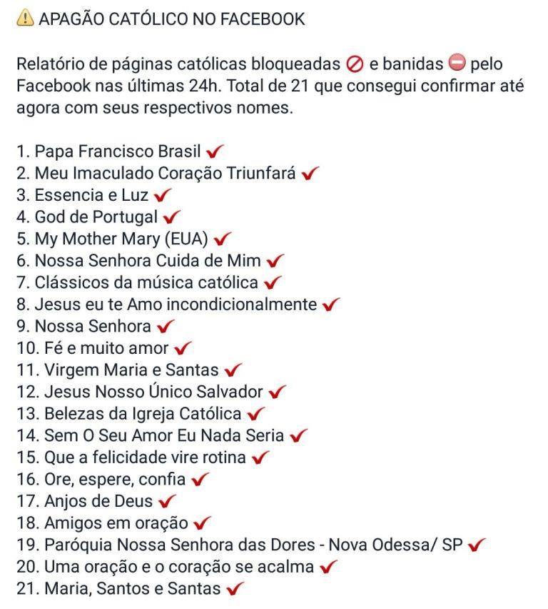 There is also this list of 21 affected Catholic pages being shared around Facebook: