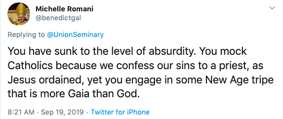 Another user wrote, “You have sunk to the level of absurdity. You mock Catholics because we confess our sins to a priest, as Jesus ordained, yet you engage in some New Age tripe that is more Gaia than God.”