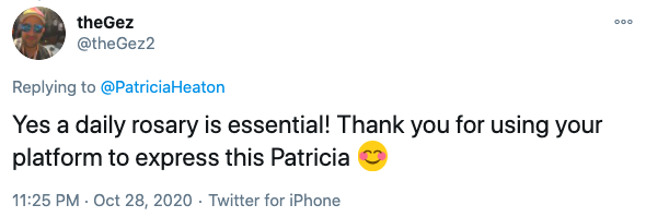 Many users thanked Heaton, and explained how and why they pray the daily rosary.
