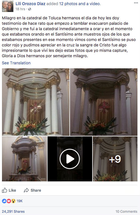 So the person is claiming that the monstrance turned blood red where it hadn’t been red before. As of this writing, the post has been shared more than 24,000 times.