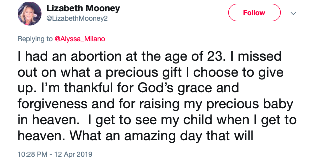 Another user said, “I had an abortion at the age of 23. I missed out on what a precious gift I choose to give up. I’m thankful for God’s grace and forgiveness and for raising my precious baby in heaven. I get to see my child when I get to heaven. What an amazing day that will [be].”