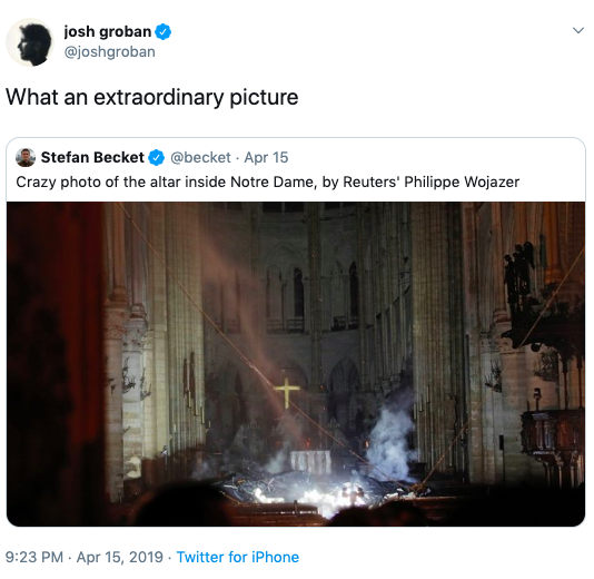 In another tweet, he reposted a photo of the cathedral’s altar post-fire.