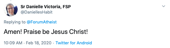 The post seemingly mocks Christianity, however, Christians considered it an opportunity to agree with the account.