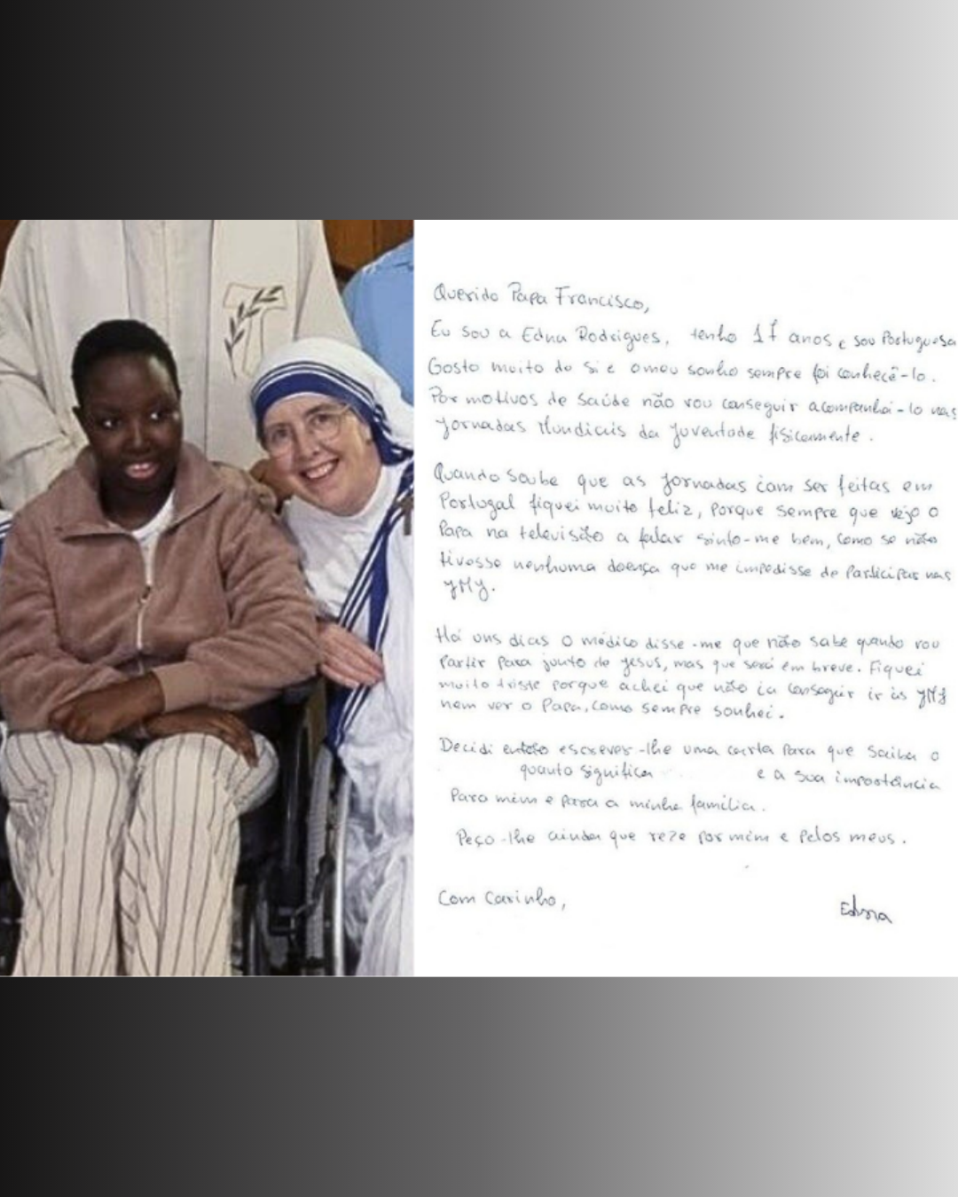 "I accompany you by praying for you, praying with you, and looking at Jesus, who is always waiting for us."