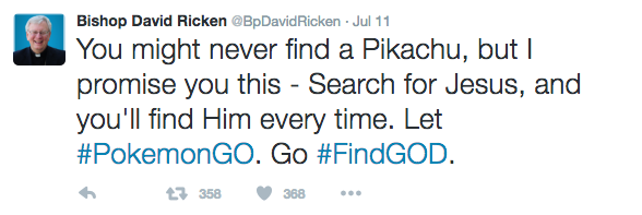 He tweeted on July 11th: “You might never find a Pikachu, but I promise you this – Search for Jesus, and you’ll find Him every time. Let #PokemonGO. Go #FindGOD.”