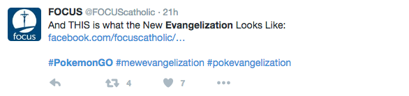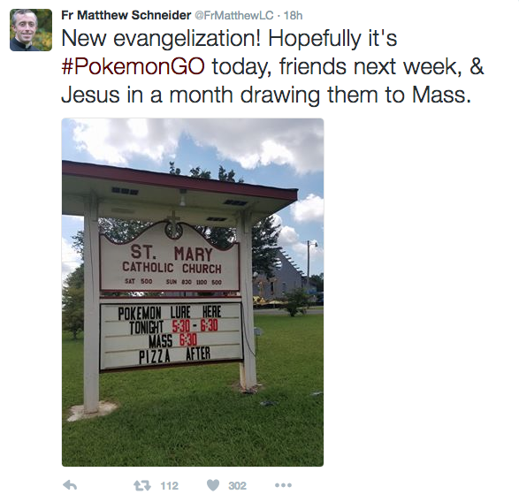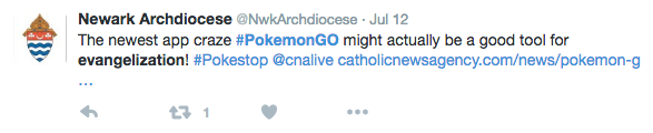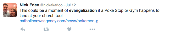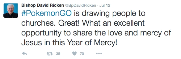 It said: “#PokemonGO is drawing people to churches. Great! What an excellent opportunity to share the love and mercy of Jesus int his Year of Mercy!”