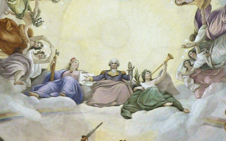 Take a tour of the Capitol, and just look up in the dome: you’ll see The Apotheosis of Washington – literally, the deification (or god-making) of Washington.
