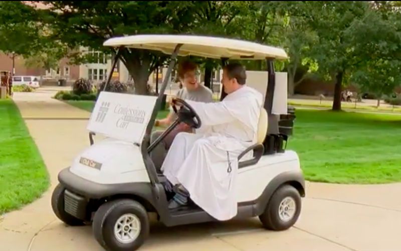 Priest Offers Golf Cart "Confessions On-The-Go" on College Campus: "Let's Get Out to the People"