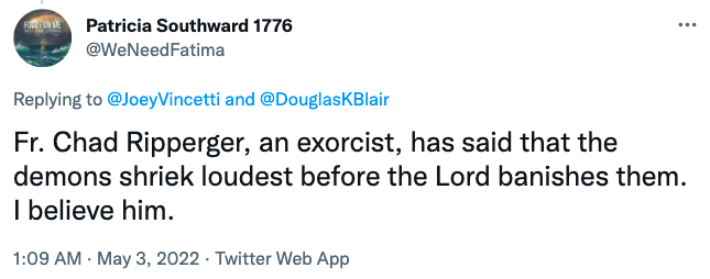 Another user said, “Fr. Chad Ripperger, an exorcist, has said that the demons shriek loudest before the Lord banishes them. I believe him.”