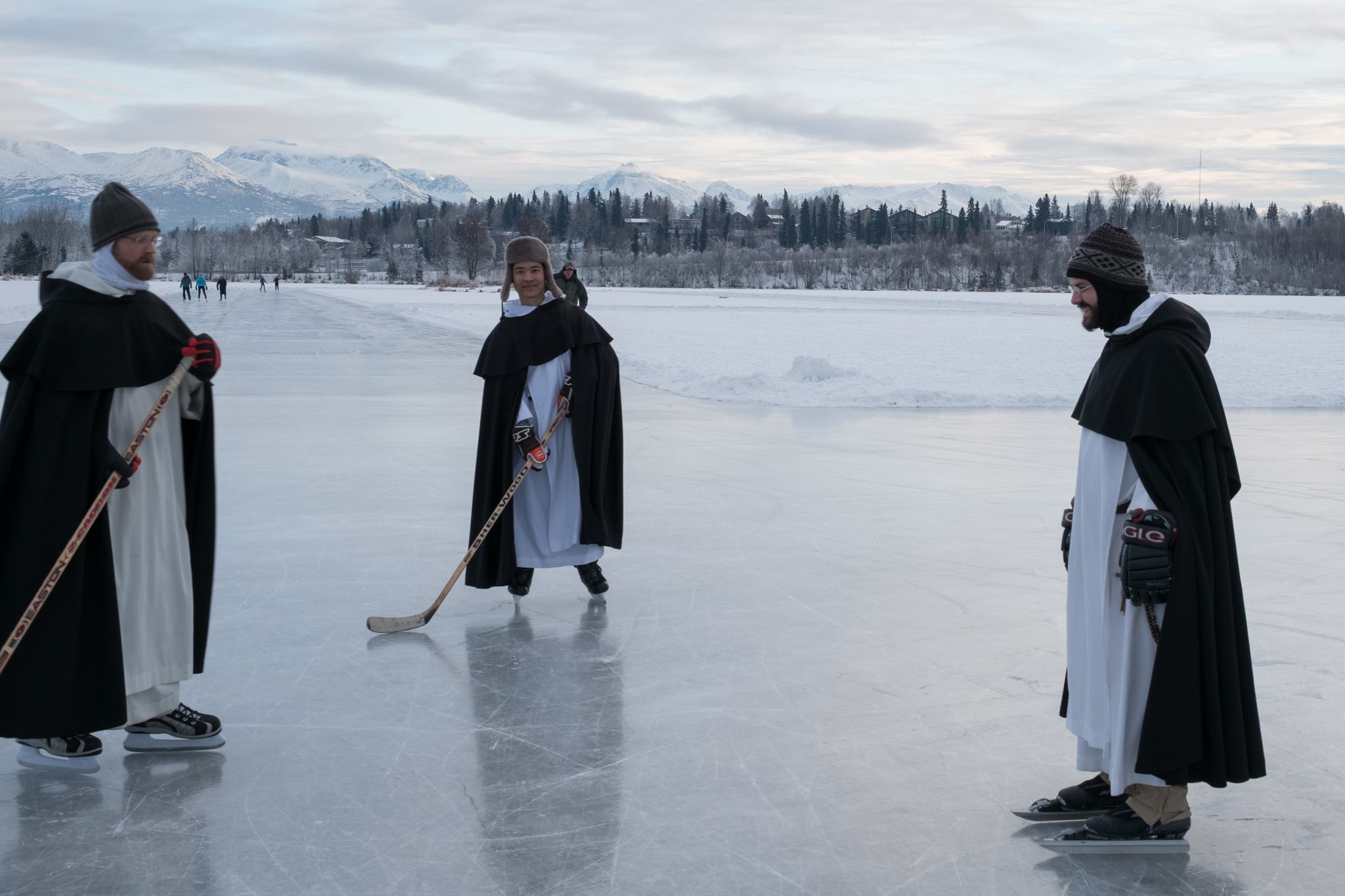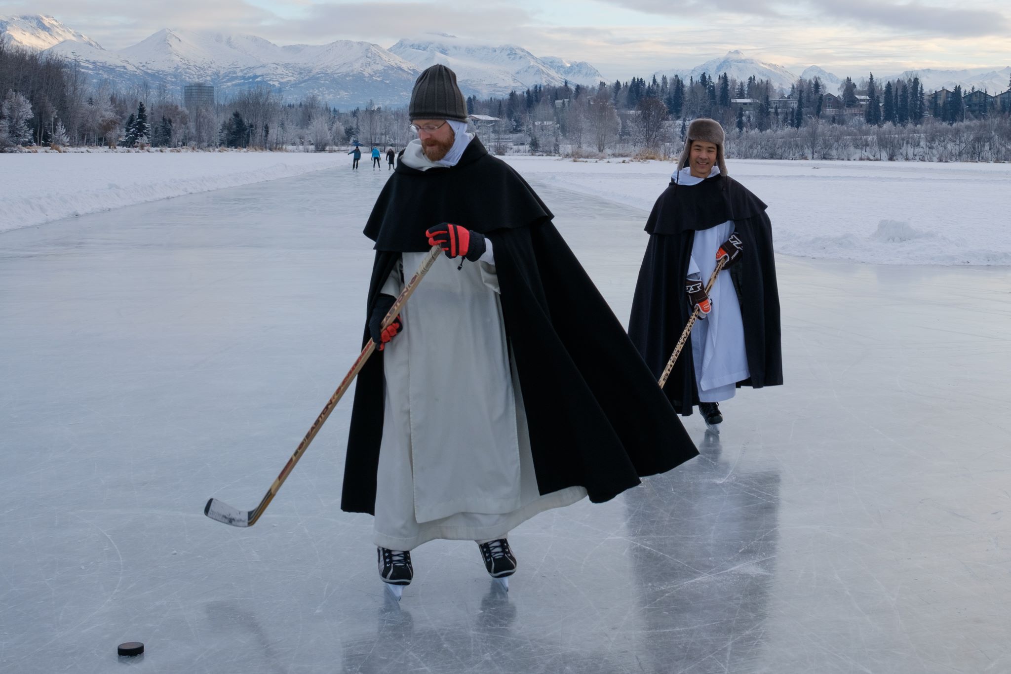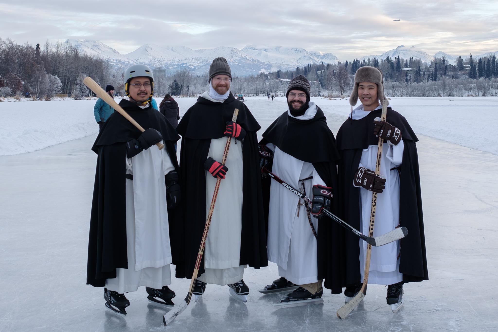 The Dominican Friars of Holy Family Cathedral in Anchorage, Alaska apparently like to play ice hockey once everything freezes. Photographer Gavin Duncan snapped some great photos and the result is a lot of fun!