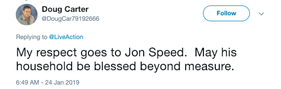 This user said, “My respect goes to Jon Speed. May his household be blessed beyond measure.”