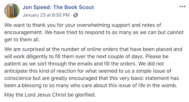 A few days after their sign went viral on social media, the bookstore said their sales skyrocketed. They’ve also been invited to speak tonight on on Bott Radio Network with the Family Research Council.