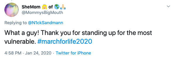 Another user said, “What a guy! Thank you for standing up for the most vulnerable. #marchforlife2020”.