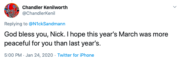 This user also said, “God bless you, Nick. I hope this year’s March was more peaceful for you than last year’s.”