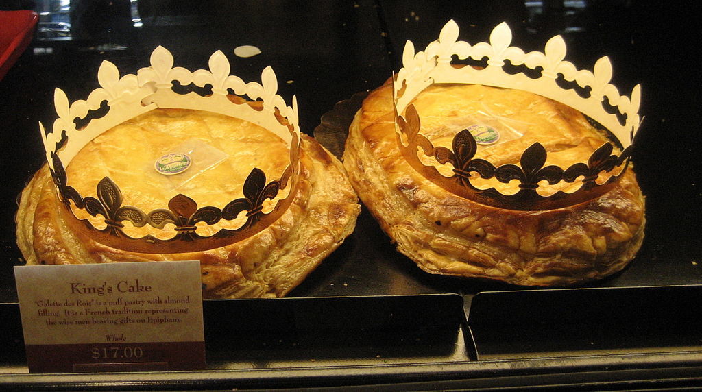 In New Orleans, Louisiana (and elsewhere in the world), people make (or buy) special round cakes called King Cakes. Inside the cake, a little token is hidden somewhere. Whoever gets the piece with the token gets to wear the crown that comes with the cake! They are also responsible for providing the next King Cake…