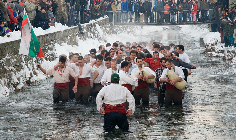 In Kalofer, Bulgaria, before the priest throws the cross into the icy water for people to retrieve, a special band made up of bagpipes and drums plays in the icy water. Since it’s so cold, it’s considered an honorable thing to participate!