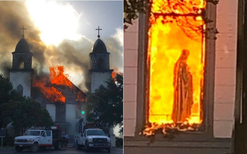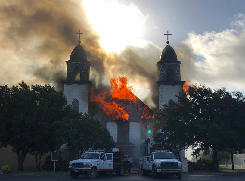 Neighbors managed to save most of the Eucharist and the tabernacle, but the remainder of the historic church completely burned within 30 minutes.