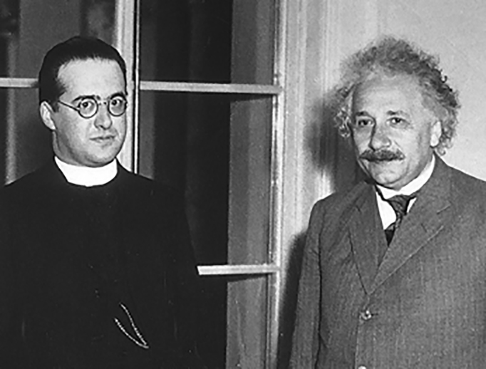 Here’s a picture of Fr. Georges Lemaître with Albert Einstein: